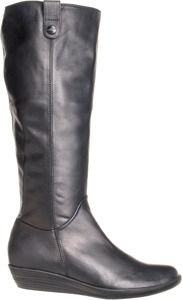 One of the things I find hard about knee boots is that they are often too big around the calf for me. These fit really snugly. They have a tiny, rubber, wedge heel. I can walk in them all day. I love them.